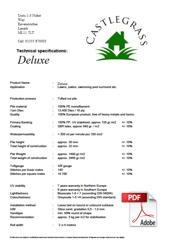 Castlegrass jointing tape is used with our green adhesive to joint rolls. Please see our guide to laying for full instructions. Full Roll 200mm x 100m. Supplied Per Linear Metre |